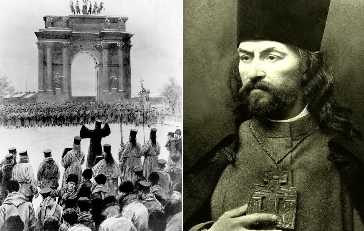 Μέσα σε αυτό το κλίμα, εμφανίζεται ο ιερέας Γκεόργκι Γκαπόν, πρόσωπο αντιφατικό, αλλά καθοριστικό. Μπαίνει μπροστά σε μια ειρηνική πορεία προς τα Χειμερινά Ανάκτορα, με στόχο να παραδώσει στον Τσάρο μια αναφορά, διατυπωμένη σε τόνο ικετευτικό, που ζητά αξιοπρεπείς όρους εργασίας, καλύτερους μισθούς, προστασία από την αυθαιρεσία και πολιτικές αλλαγές, όπως την ανάγκη εκπροσώπησης και δικαιωμάτων.