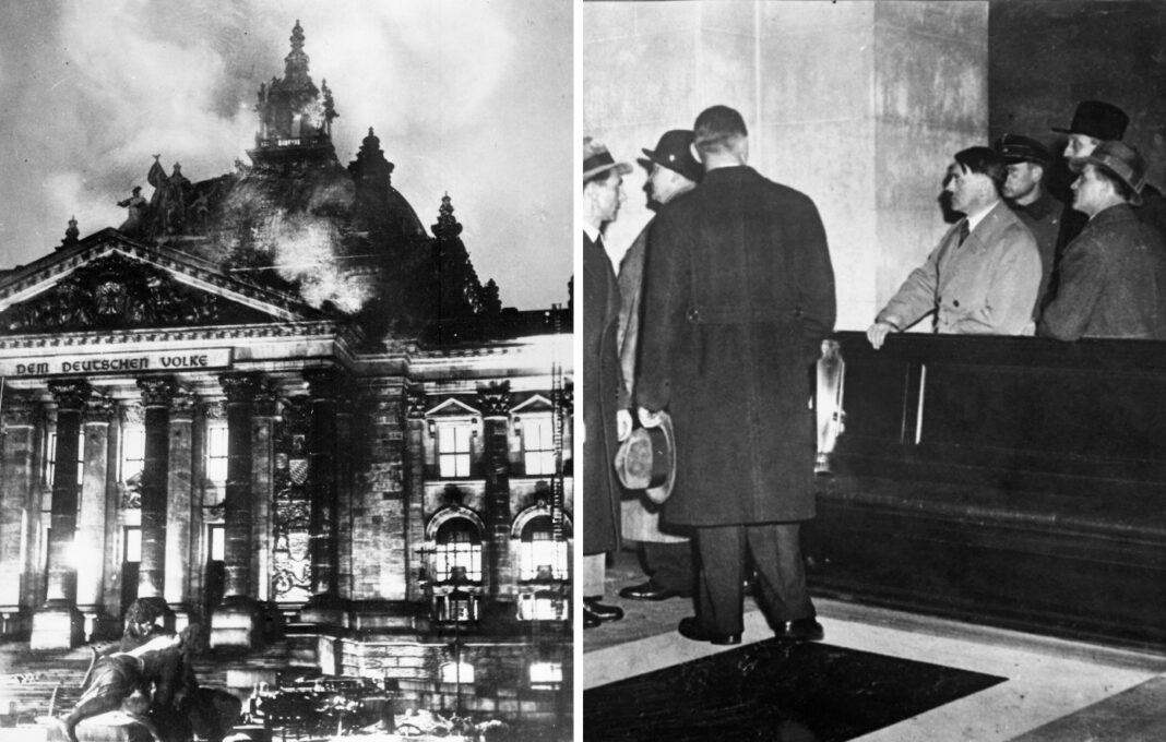 1933: Ξεσπά η φωτιά στο Ράιχσταγκ (Γερμανική Βουλή), λίγες μέρες πριν από τις εκλογές, γεγονός που οι ναζί εκμεταλλεύονται για να ενισχύσουν την εξουσία τους. Ο Αδόλφος Χίτλερ, που είχε ήδη εκλεγεί καγκελάριος, χρησιμοποιεί το περιστατικό ως πρόσχημα για να κηρύξει κατάσταση έκτακτης ανάγκης, να αναστείλει πολιτικά δικαιώματα, να κλείσει αντιπολιτευτικές εφημερίδες και να θέσει εκτός νόμου τα πολιτικά κόμματα. Η προβοκάτσια αποκαλύπτεται στη δίκη που ακολουθεί, όμως ο Ολλανδός Μαρίνος βαν ντερ Λούμπε, ένας νεαρός με νοητική στέρηση, εκτελείται ως αυτουργός. Το γεγονός αυτό σηματοδοτεί την απαρχή της ναζιστικής δικτατορίας στη Γερμανία.