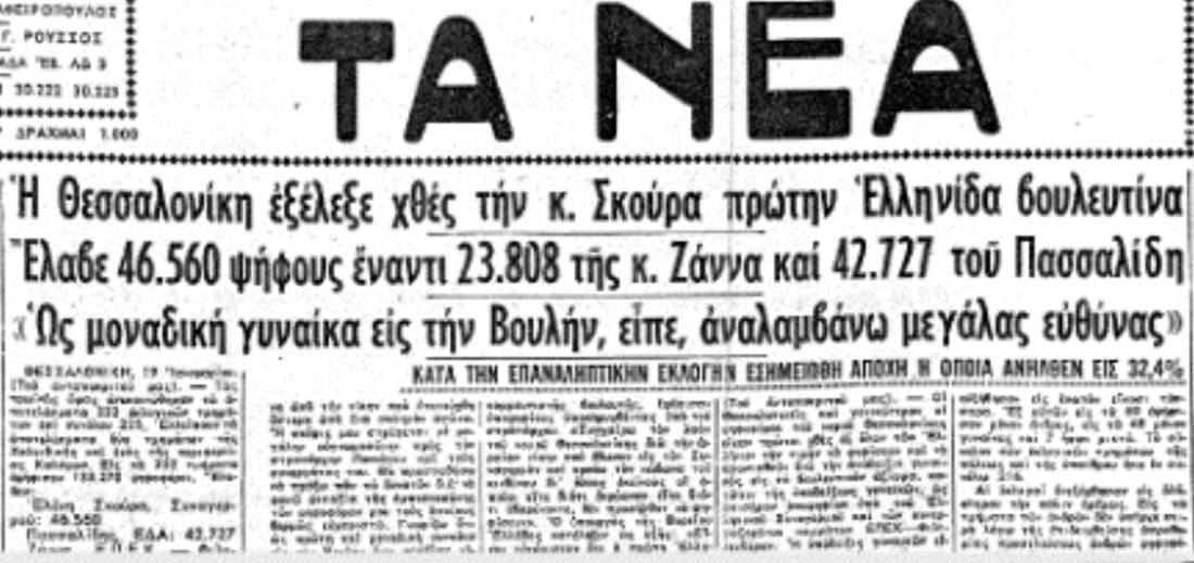 Η ίδια η Σκούρα, μετά την εκλογή της, συμπυκνώνει το βάρος της πρώτης φοράς με λόγια που μοιάζουν να σηκώνουν μια ολόκληρη εποχή στις πλάτες τους: «Θα προσπαθήσω να πράξω παν το δυνατόν διά να φανώ ανταξία… Γνωρίζω ότι ως πρώτη και μοναδική γυναίκα εις την Βουλήν έχω μεγάλας ευθύνας…».