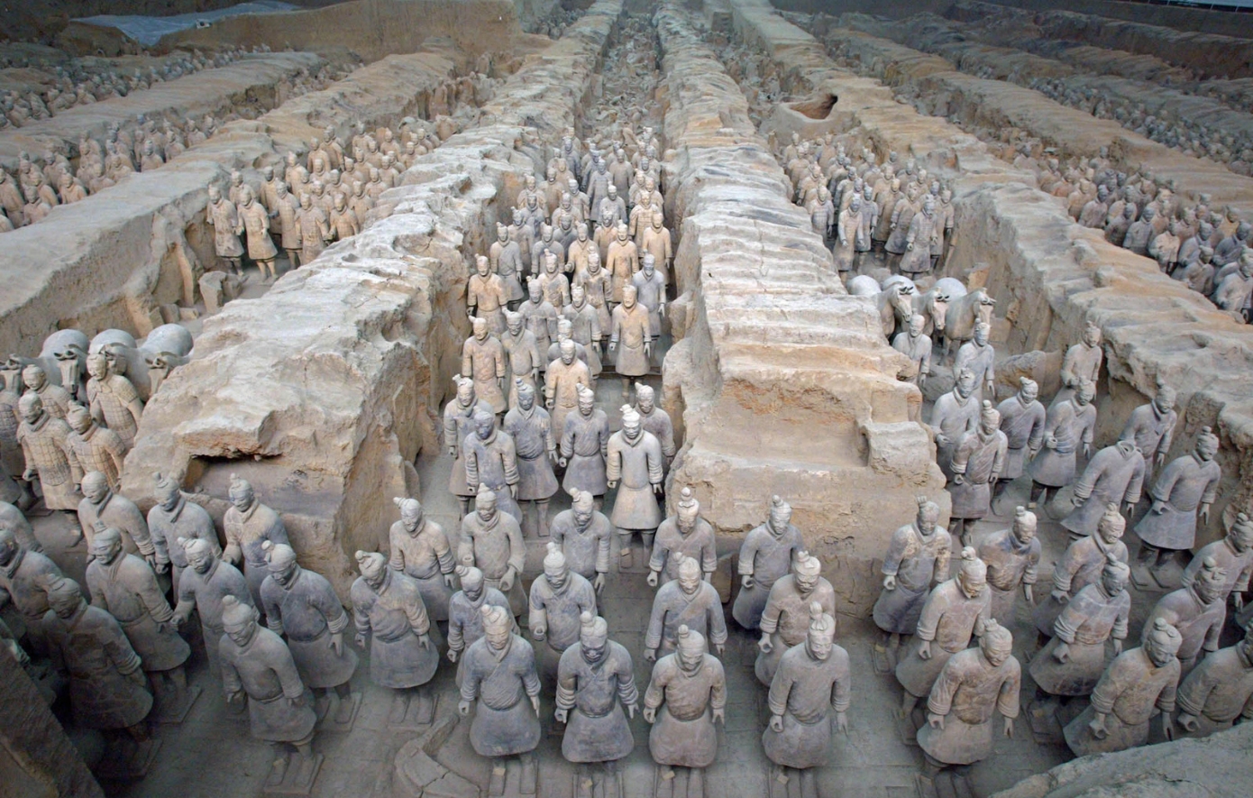1974: Αγρότες στην επαρχία Σαανσί της Κίνας, κοντά στην πόλη Σιάν, ανακαλύπτουν τυχαία κατά τη διάνοιξη πηγαδιού τα πρώτα θραύσματα από τον περίφημο Στρατό από Τερακότα, ένα από τα σημαντικότερα αρχαιολογικά ευρήματα του 20ού αιώνα. Οι ανασκαφές που ακολουθούν φέρνουν στο φως έναν τεράστιο υπόγειο ταφικό χώρο με περισσότερα από 8.000 πήλινα αγάλματα πολεμιστών, αλόγων και αρμάτων σε φυσικό μέγεθος, κατασκευασμένα για να συνοδεύουν τον πρώτο αυτοκράτορα της Κίνας, Τσιν Σι Χουάνγκ, στη μεταθανάτια ζωή. Το εύρημα εντυπωσιάζει για την κλίμακα, τη λεπτομέρεια και την οργάνωσή του, προσφέροντας πολύτιμες πληροφορίες για τη στρατιωτική δομή και την τέχνη της εποχής.