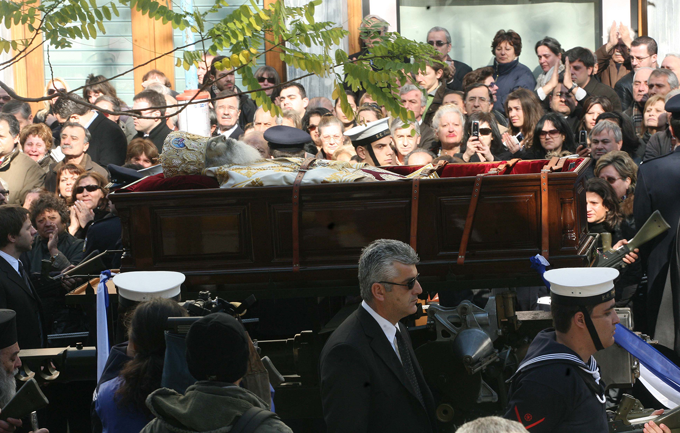 2008: Κηδεύεται στην Αθήνα ο Αρχιεπίσκοπος Χριστόδουλος, με μαζική παρουσία κόσμου και πολιτειακή τελετουργία.