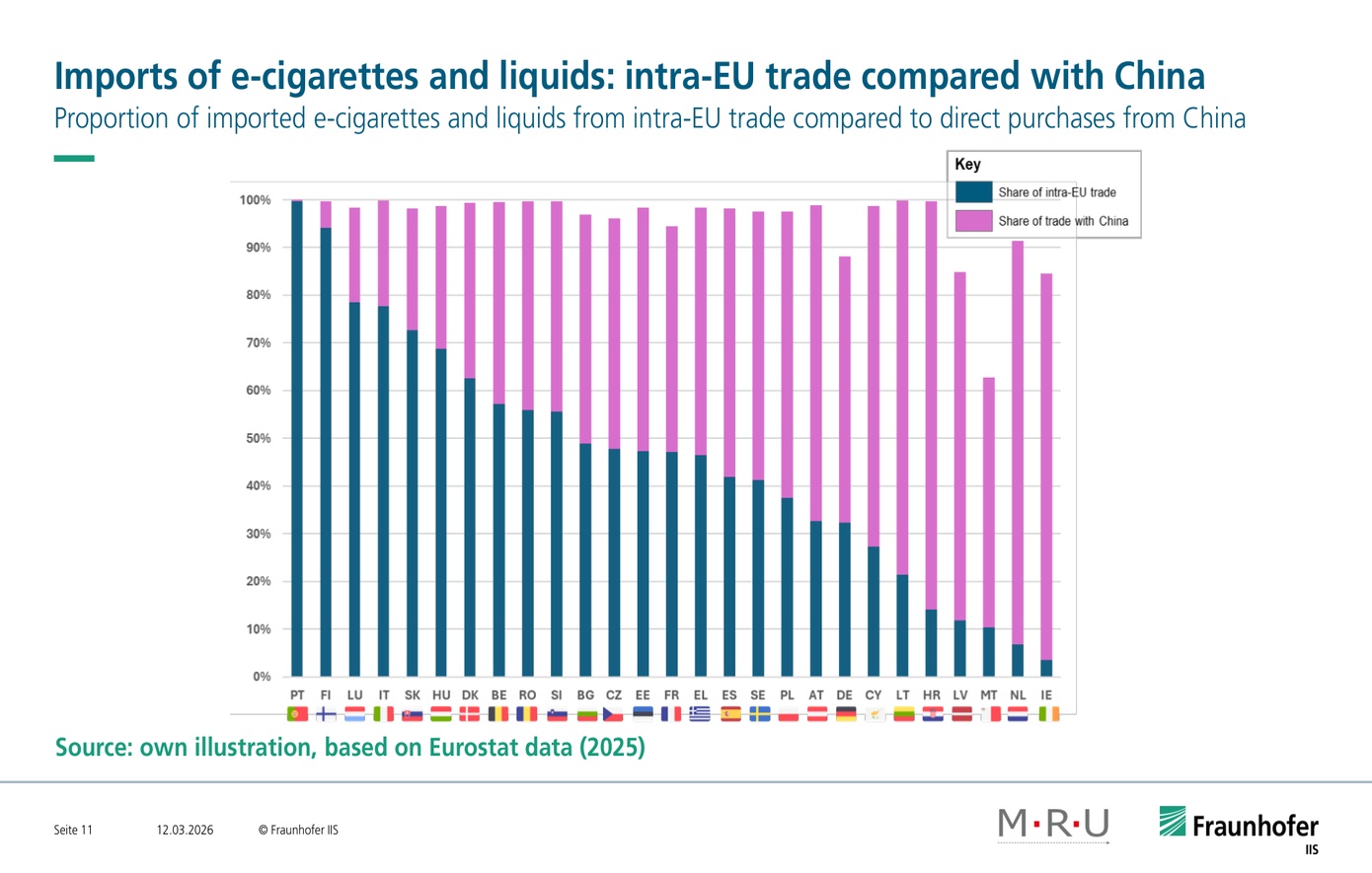 «Για πρώτη φορά καταφέραμε να χαρτογραφήσουμε συστηματικά τη μη κανονική αγορά ηλεκτρονικών τσιγάρων στην Ευρώπη – με βάση αναλύσεις εμπορίου και εφοδιαστικών αλυσίδων, τελωνειακές στατιστικές και τμηματοποίηση της αγοράς», εξηγεί ο Uwe Veres-Homm, επικεφαλής Ανάλυσης Κινδύνου και Τοποθεσίας στο Fraunhofer IIS.