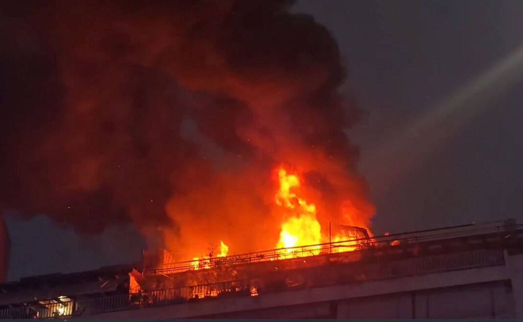 Οι μεγάλες φλόγες απειλούν να επεκταθούν και στο διπλανό κτίσμα.