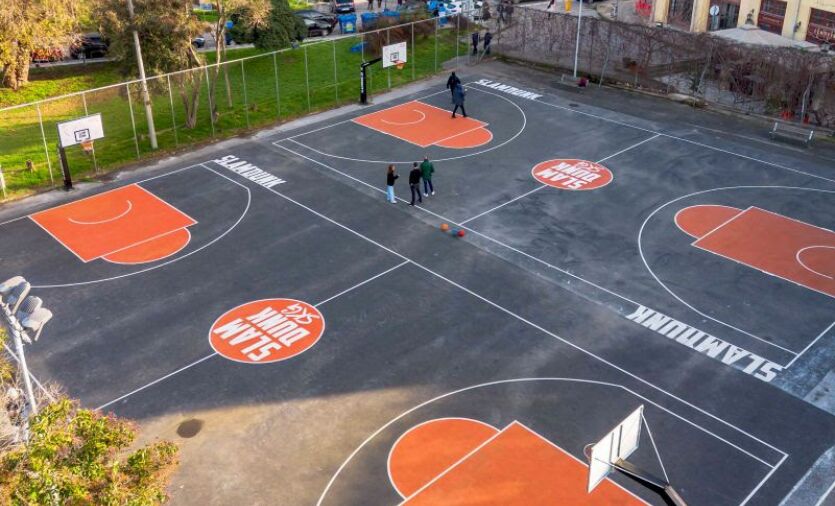 Η αναβάθμιση του γηπέδου υλοποιήθηκε με δωρεά και πρωτοβουλία του Ομίλου Cosmos Sport, μέσω του SLAMDUNK (Basketball Specialty Brand), στο πλαίσιο δράσεων εταιρικής κοινωνικής ευθύνης, ενισχύοντας το δίκτυο ελεύθερα προσβάσιμων χώρων άθλησης στις γειτονιές της Θεσσαλονίκης.