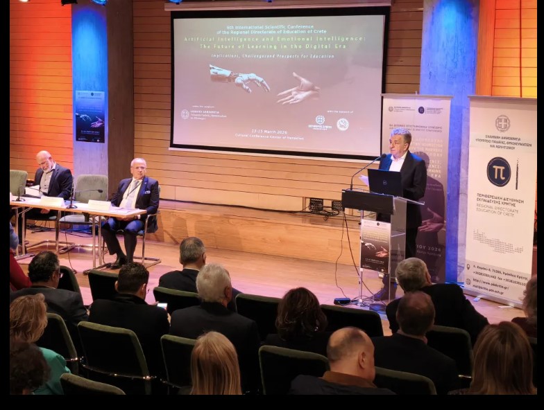 Η Περιφέρεια Κρήτης έχει εισέλθει δυναμικά στην ψηφιακή εποχή, εξοπλίζοντας τα σχολεία με εργαστήρια πληροφορικής, φορητούς ηλεκτρονικούς υπολογιστές, κιτ ρομποτικής και εργαστήρια εικονικής πραγματικότητας, διασφαλίζοντας έτσι ίσες ευκαιρίες πρόσβασης στη γνώση για τις μαθήτριες και τους μαθητές του νησιού. Αυτό τόνισε στον χαιρετισμό του ο Περιφερειάρχης Κρήτης Σταύρος Αρναουτάκης στην έναρξη του 6ου Διεθνούς Επιστημονικού Συνεδρίου, που ξεκίνησε χθες το απόγευμα (Παρασκευή) στο Πολιτιστικό Κέντρο και διοργανώνει η Περιφερειακή Διεύθυνση Εκπαίδευσης Κρήτης, με θέμα τη σχέση Τεχνητής και Συναισθηματικής Νοημοσύνης στην Ψηφιακή Εποχή.