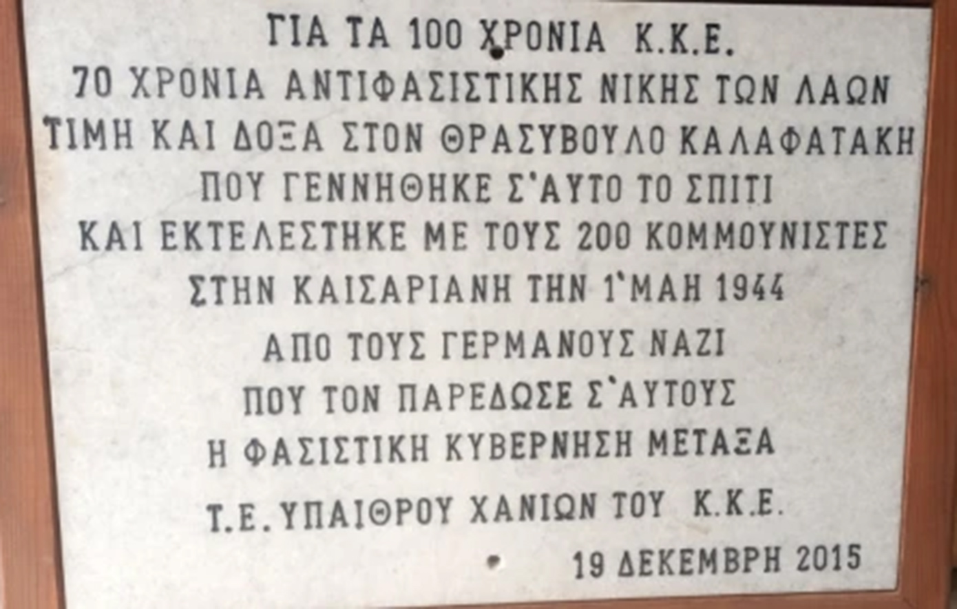 Οι φωτογραφίες που παρουσιάζουν τις τελευταίες στιγμές των «200» πριν από την εκτέλεσή τους, στον τοίχο της Καισαριανής, εμφανίστηκαν στον διαδικτυακό τόπο δημοπρασιών eBay το περασμένο Σάββατο, από έναν συλλέκτη που ειδικεύεται στα αναμνηστικά του Γερμανικού Στρατού και ο οποίος τις προσέφερε προς πώληση. Από τη διαδικασία της ταυτοποίησης, η οποία είναι σε εξέλιξη, διαπιστώθηκε ότι ο άνδρας με το λευκό πουκάμισο είναι ο Θρασύβουλος Καλαφατάκης από τον Πλατανιά.