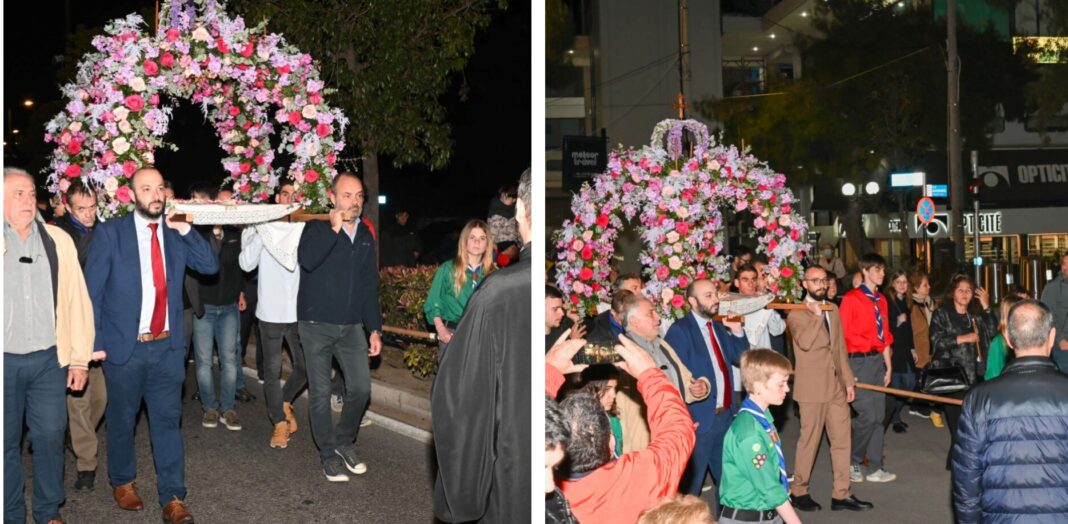 Η περιφορά του Επιταφίου συγκέντρωσε πλήθος πιστών, με τη συνοδεία της μπάντας, ενώ ο Δήμαρχος Λυκόβρυσης-Πεύκης συμμετείχε ενεργά στις ιερές εκδηλώσεις.
