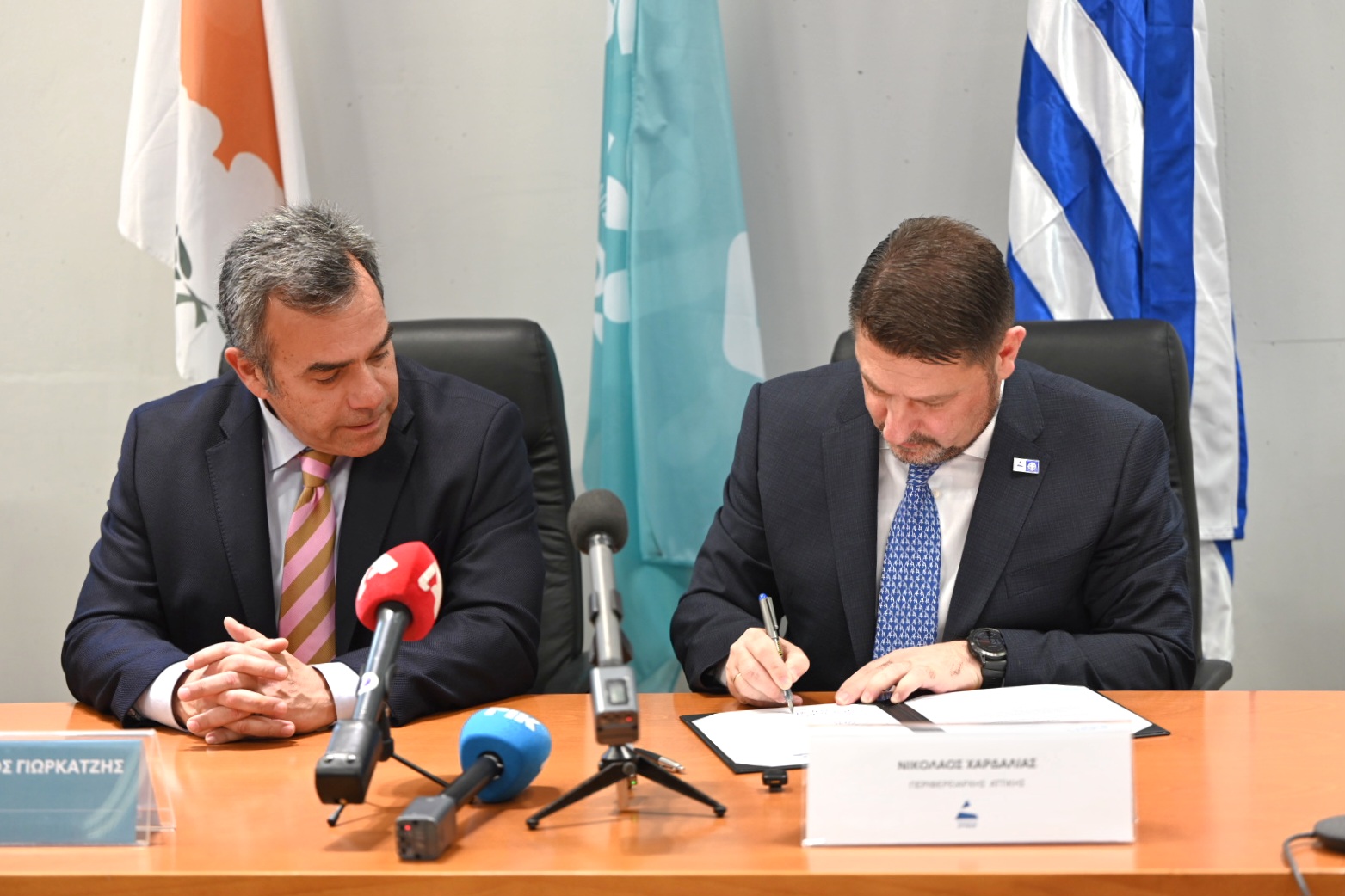 Κατά την πρώτη ημέρα της επίσκεψης, οι κ.κ. Γιωρκάτζης και Χαρδαλιάς υπέγραψαν Μνημόνιο Συνεργασίας μεταξύ του ΕΟΑ Λευκωσίας και της Περιφέρειας Αττικής το οποίο καλύπτει, μεταξύ άλλων, τους τομείς της ψηφιακής μετάβασης, της ανάπτυξης «Έξυπνων Περιφερειών», της καινοτομίας, της έρευνας και της τεχνολογίας, της δημόσιας διοίκησης, της περιβαλλοντικής προστασίας και βιώσιμης ανάπτυξης, της διαχείρισης υδάτινων πόρων και αποβλήτων, της αντιπλημμυρικής προστασίας και της αξιοποίησης ανανεώσιμων πηγών ενέργειας.