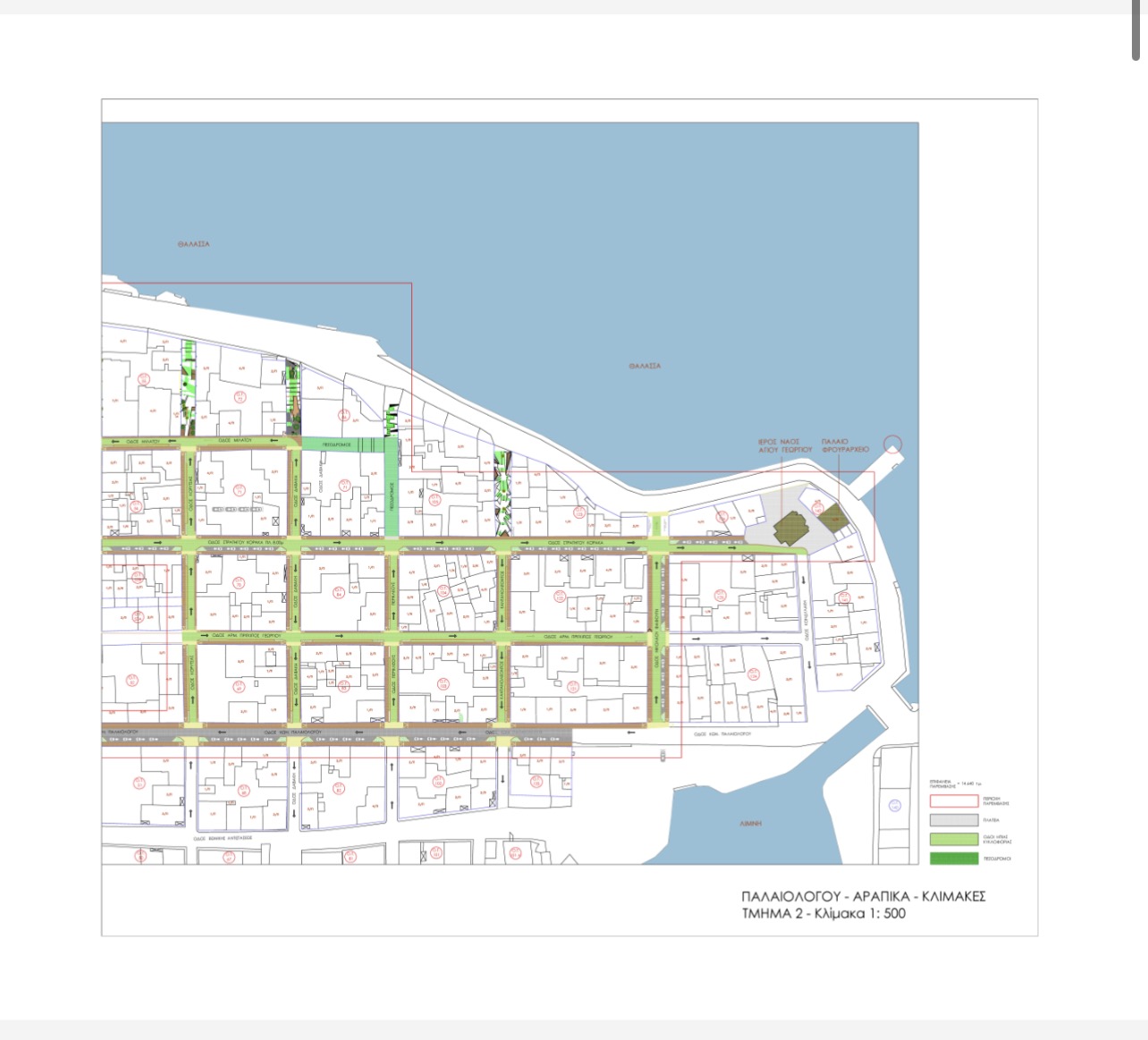 μβάνουν, μεταξύ άλλων: ανάπλαση της οδού Κ. Παλαιολόγου, οδών της συνοικίας «Αράπικα», ανακατασκευή κλιμάκων σύνδεσης με την παραλιακή ζώνη, παρεμβάσεις ήπιας κυκλοφορίας, ενίσχυση του αστικού πρασίνου, αναβάθμιση φωτισμού και αστικού εξοπλισμού.