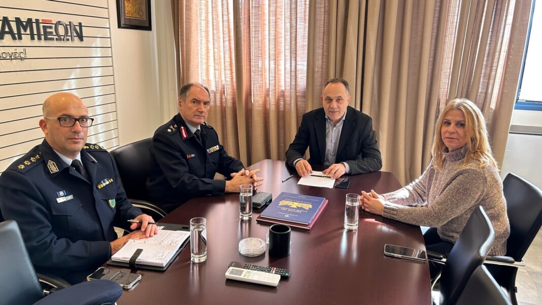 Παρόντες στη συνάντηση ήταν ακόμα ο Α΄ Βοηθός ΓΕ.ΠΑ.Δ., Αστυνομικός Διευθυντής Κωνσταντίνος Κουκουβίνος και η Αντιδήμαρχος Δημοτικής Αστυνομίας – Κοινοχρήστων Χώρων Ευαγγελία Ματσούκα – Χάψα.