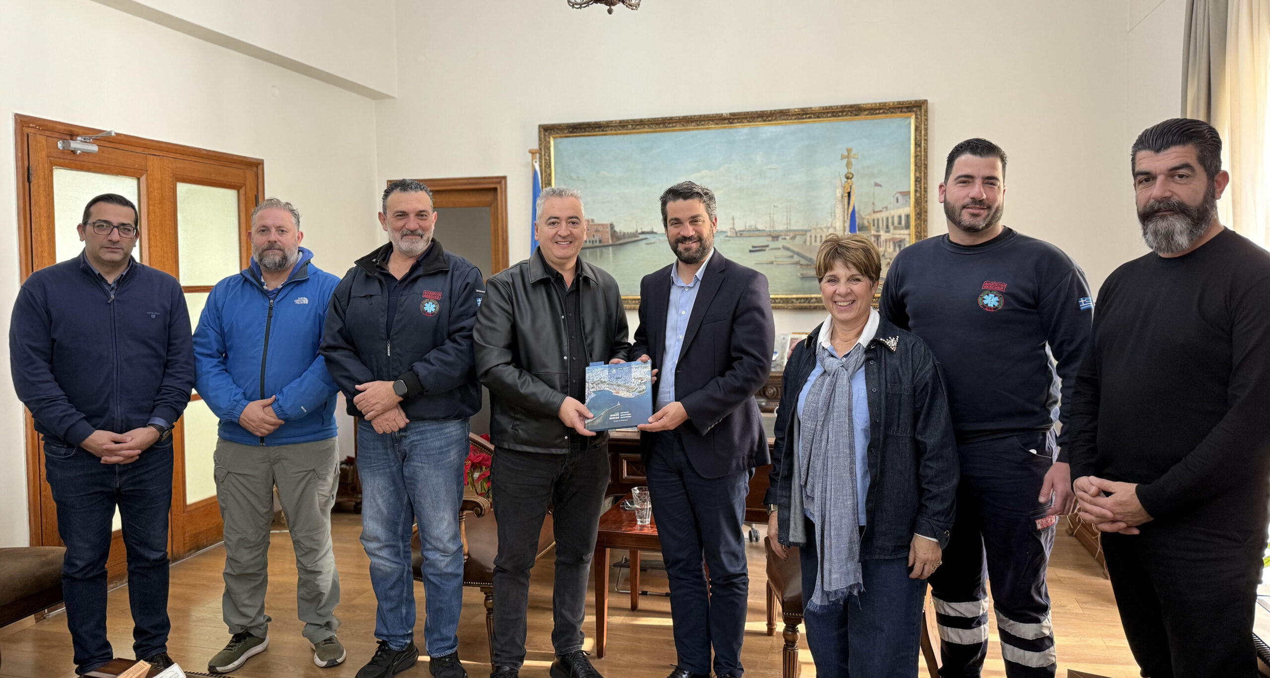 Η συνάντηση πραγματοποιήθηκε παρουσία του Γενικού Γραμματέα του Δήμου, Γιώργου Φραγκιαδάκη, της Αντιδημάρχου Κοινωνικής Πολιτικής, Ελένης Ζερβουδάκη και του Προέδρου του Δημοτικού Λιμενικού Ταμείου και Αντιδημάρχου Παλιάς Πόλης, Μανώλη Κοτσιφάκη.