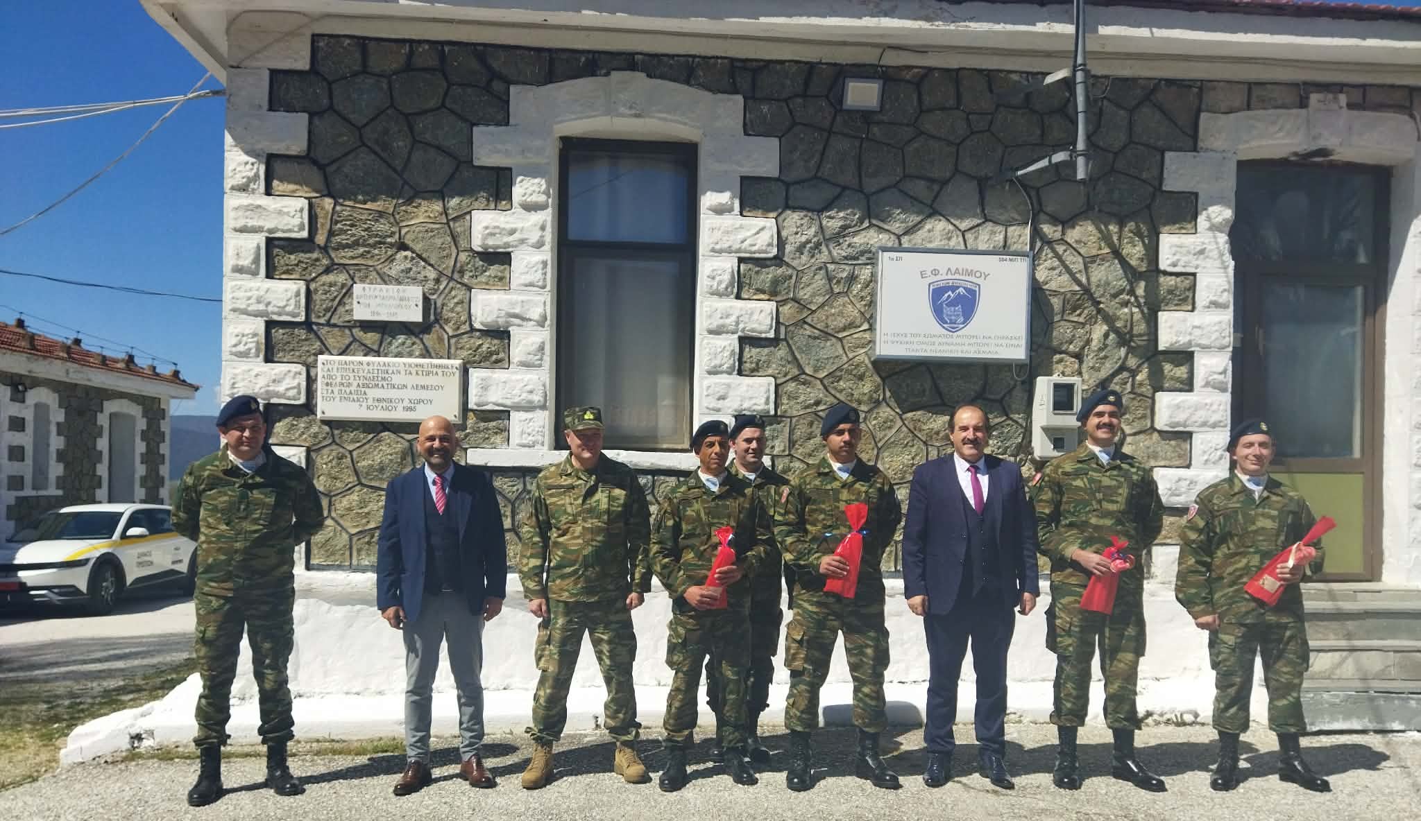 Στη συνέχεια, Δήμαρχος και Αντιπεριφερειάρχης, επισκέφτηκαν τα φυλάκια Λαιμού και Βροντερού, όπου είχαν την ευκαιρία να ανταλλάξουν ευχές και να προσφέρουν κεράσματα στα στελέχη των Ενόπλων Δυνάμεων που υπηρετούν στην περιοχή.