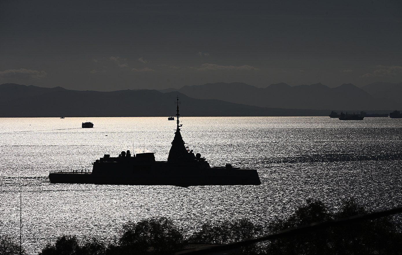 Η φρεγάτα κλάσης FDI HN «Belharra» πέρασε μπροστά από το λιμάνι της περιοχής -σε απόσταση «αναπνοής» από το πλήθος- λίγο πριν καταλήξει στον τελικό της προορισμό, το ναύσταθμο της Σαλαμίνας.