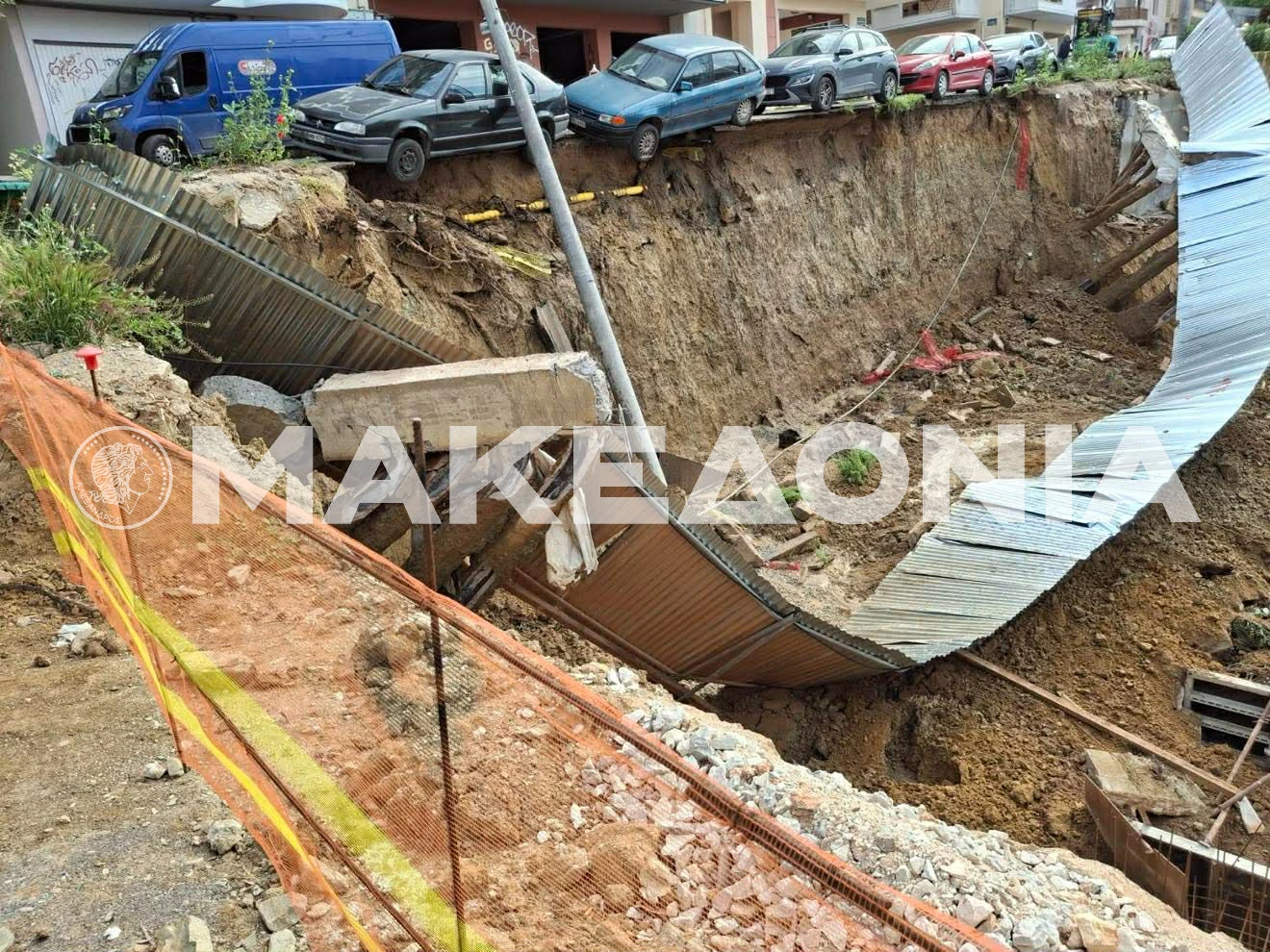 Από την κατάρρευση του τοιχίου δημιουργήθηκε επικίνδυνη κατάσταση, καθώς οχήματα που βρίσκονταν στο σημείο βρέθηκαν να «αιωρούνται» στην άκρη του πρανούς, με ένα μαίστα από αυτά να πέσει στο κενό.