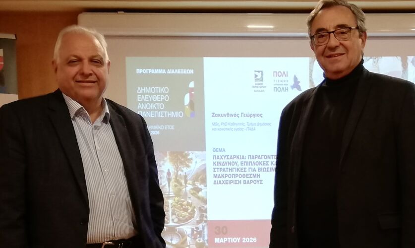 Με ιδιαίτερο ενδιαφέρον πραγματοποιήθηκε τη Δευτέρα 30 Μαρτίου 2026, στο Πολιτιστικό – Συνεδριακό Κέντρο του Δημαρχιακού Μεγάρου Περιστερίου, η διάλεξη με θέμα: «Παχυσαρκία: Παράγοντες κινδύνου, επιπλοκές και στρατηγικές για βιώσιμη μακροπρόθεσμη διαχείριση βάρους», στο πλαίσιο των δράσεων του Δημοτικού Ελεύθερου Ανοικτού Πανεπιστημίου (Δ.Ε.Α.Π.) Περιστερίου.