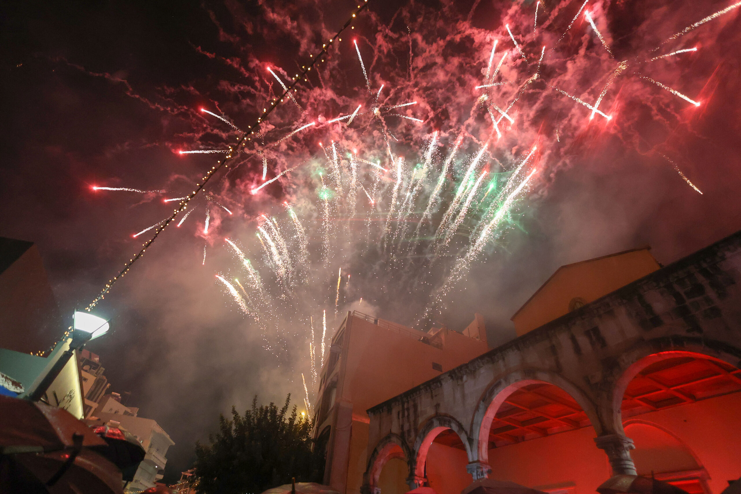 Ο Δήμαρχος Ηρακλείου Αλέξης Καλοκαιρινός, μαζί με τους Αντιδημάρχους Τάσο Τσατσάκη, Ρένα Παπαδάκη – Σκαλίδη, Γιώργο Καραντινό, Νίκο Γιαλιτάκη, Γιώργο Τσαγκαράκη, Γιάννη Τσαπάκη και Φιλαρέτη Δαφέρμου – Χρονάκη, αλλά και τον κόσμο που είχε συγκεντρωθεί, μέτρησαν αντίστροφα και ο βροχερός ουρανός φωτίστηκε από τα «αθόρυβα» πυροτεχνήματα που έχει καθιερώσει ο Δήμος στις