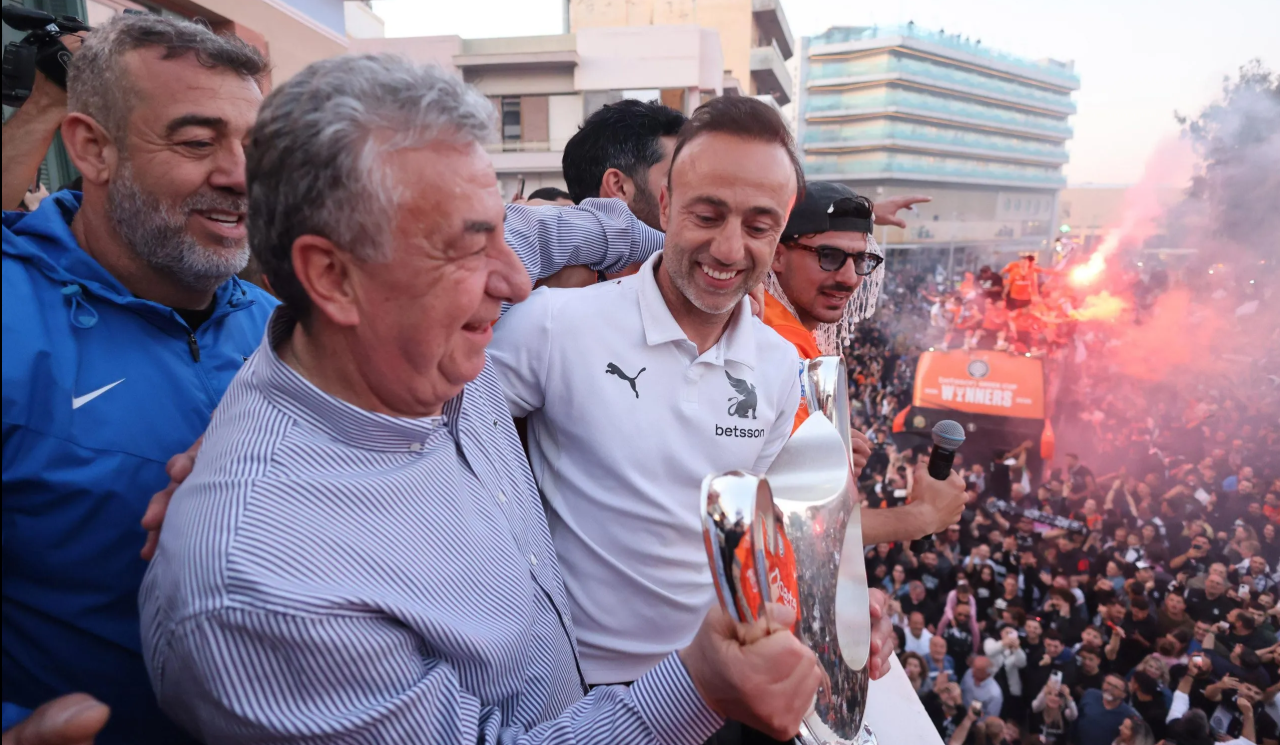Η άφιξη του ανοιχτού λεωφορείου των νικητών με το σύνθημα“WINNERS” στην Πλατεία Ελευθερίας σήμανε την κορύφωση των πανηγυρισμών. Οι παίκτες της ομάδας, κρατώντας το κύπελλο, έγιναν ένα με τον κόσμο, ενώ από το μπαλκόνι της Περιφέρειας οι διοικούντες και ο Περιφερειάρχης μοιράστηκαν τη χαρά της μεγάλης νίκης, σε μια βραδιά που θα μείνει χαραγμένη στην ιστορία του συλλόγου και της πόλης.