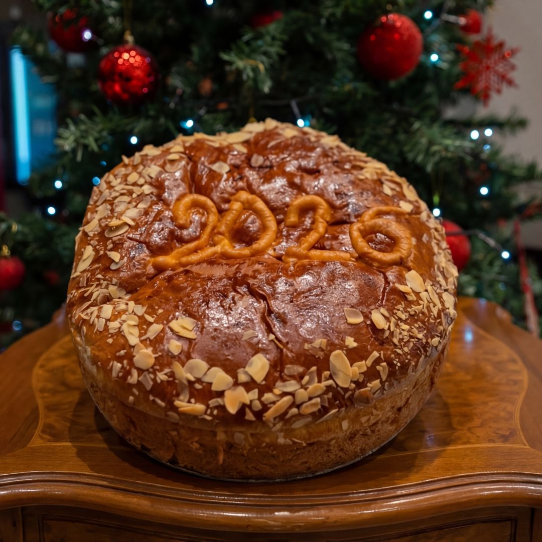 Φυσικά, δεν θα μπορούσε να λείπει η βασιλόπιτα τσουρέκι: αρωματική, μαστιχωτή, με εκείνη την υφή που ξεχωρίζει από την πρώτη μπουκιά — και σε επιλογή χωρίς ζάχαρη, για όσους θέλουν πιο…”ελαφριά”  απόλαυση.