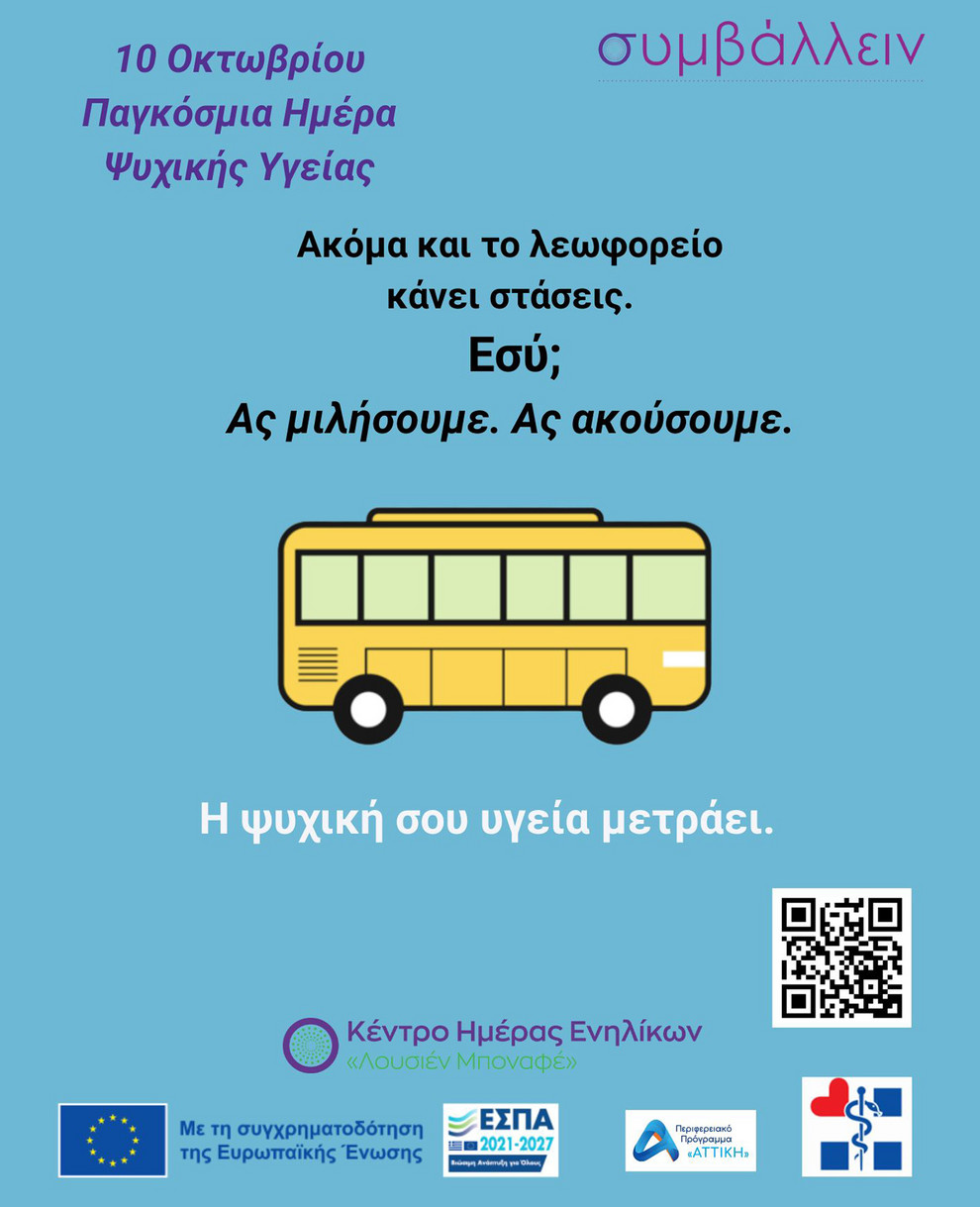 Με την παρουσία σας θα συμβάλετε στην ενίσχυση του δημόσιου διαλόγου για την ψυχική υγεία, στην αποστιγματοποίηση και στη διάδοση του μηνύματος ότι η ψυχική υγεία είναι δικαίωμα όλων.