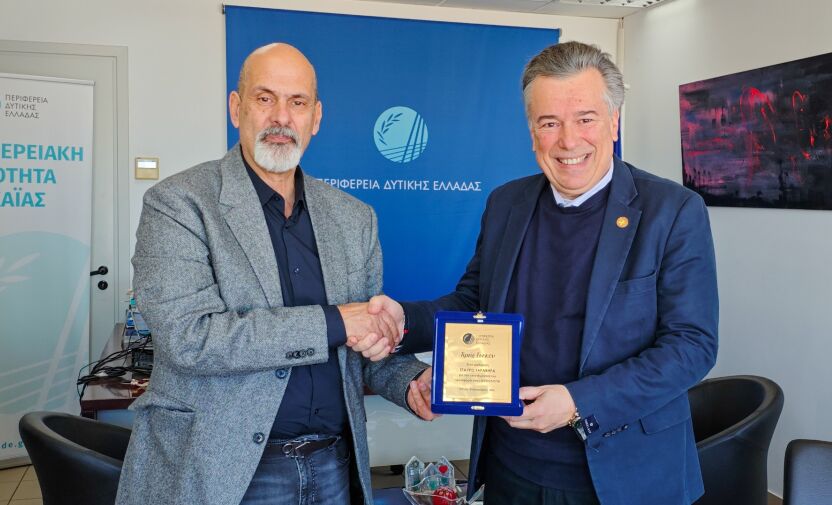 Τιμητική πλακέτα απένειμε ο Αναπληρωτής Περιφερειάρχης Δυτικής Ελλάδας, Χαράλαμπος Μπονάνος, στον Καθηγητή Φυσιολογίας της Ιατρικής Σχολής του Πανεπιστημίου Πατρών, Σταύρο Ταραβήρα, χθες Πέμπτη, 26 Φεβρουαρίου 2026, αναγνωρίζοντας το σπουδαίο και πρωτοποριακό ερευνητικό έργο που διεξάγει ο λαμπρός επιστήμονας.